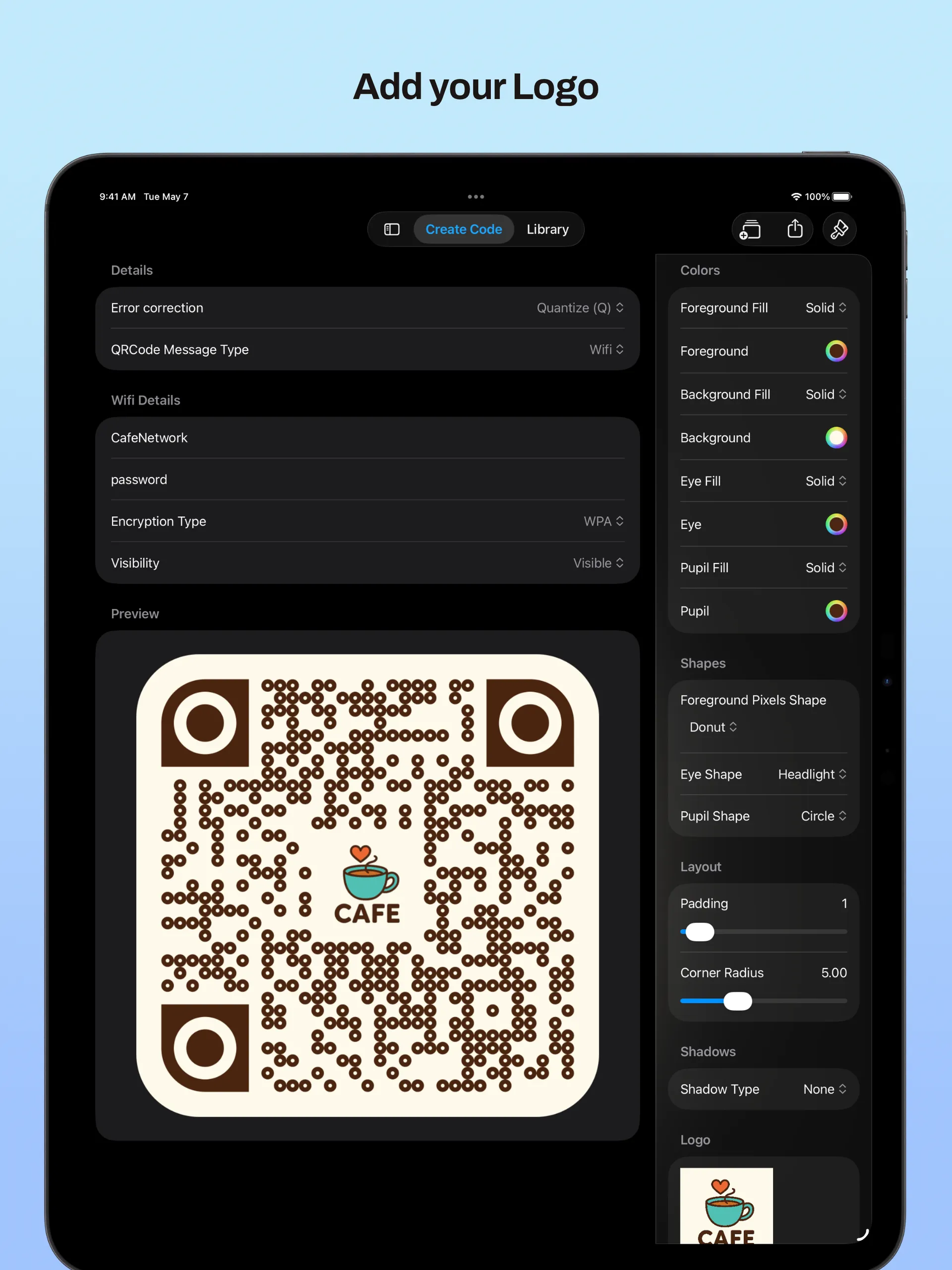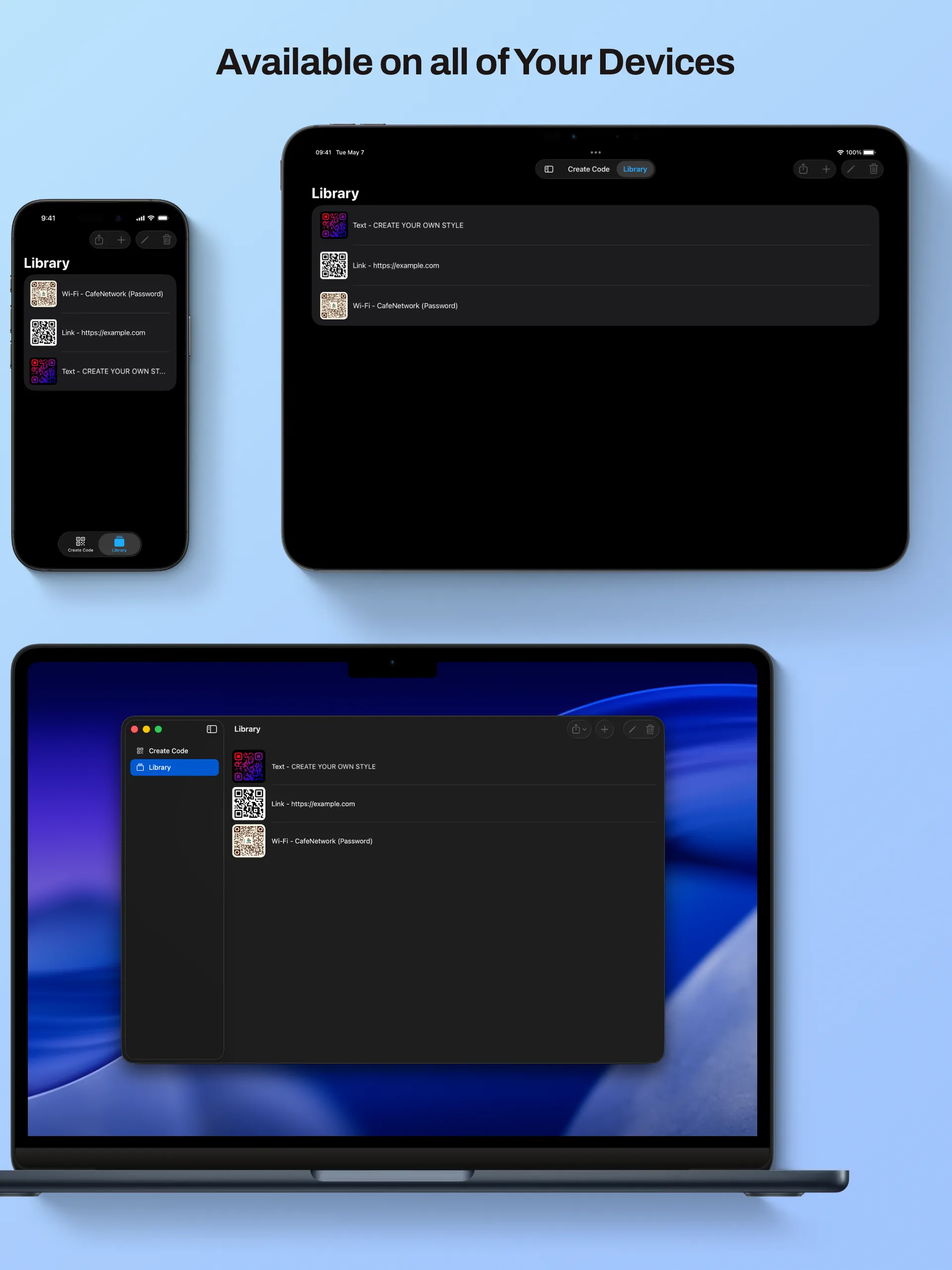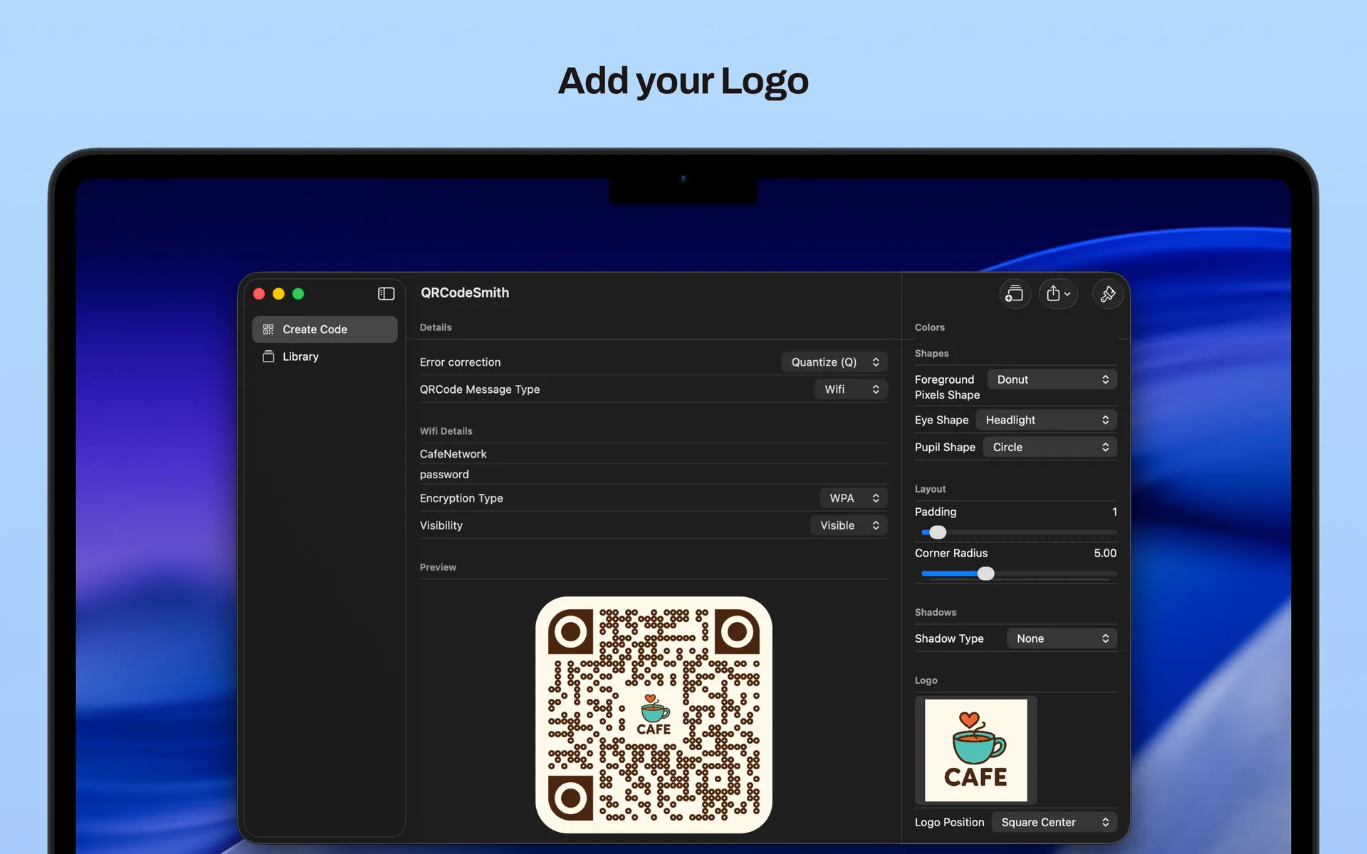 Support for Text, Wi-Fi, SMS, and Event QR codes.